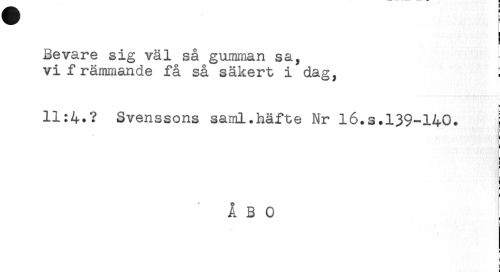 //// f //// Bevare sig väl så gumman sa, ^ //// vi främmande få så säkert i dag, ; //// t! //// 11:4.? Svenssons saml.häfte Nr l6.s.139-140. //// T //// ] //// E //// i ////