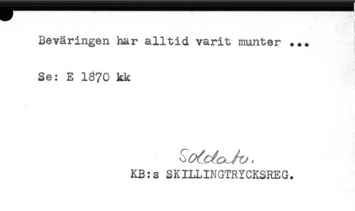 //// Beväringen har alltid varit munter ... //// : - -A ' '! //// .. //// * //// < //// Se: E 1870 kk //// j //// 1 //// ' t //// < //// o /c/, //// KB:s SKILLINGTRYCKSREG. ////