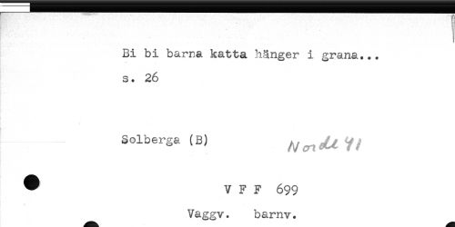 //// ' ' j //// . //// Bi bi barna katta hänger i grana... //// s. 26 //// Solberga(B) //// ^ V F F 699 //// Vaggv. barnv. ////