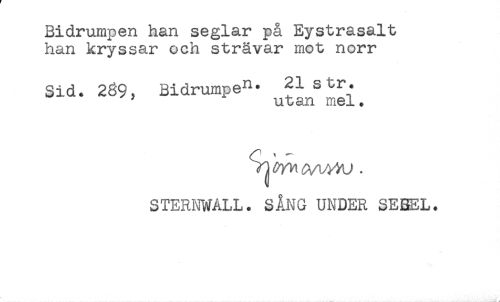 //// Riarumpen nan seg&ar pa //// han kryssar och strävar mot norr //// Sid. 289, Bidrumpen. J^str.^ //// STERNWALL. SÅNG UNDER SEBEL. //// ^ //// /
