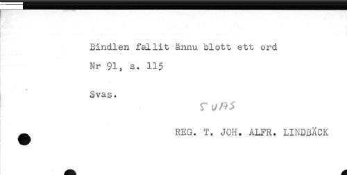//// ' ' - - ' - ! //// } Bindlen fallit ännu blott ett ord //// c e //// Nr 91, s. 11$ //// ti //// Svas. //// r //// ^ REG. T. JOH. ALFR. LINDBÄCK ////