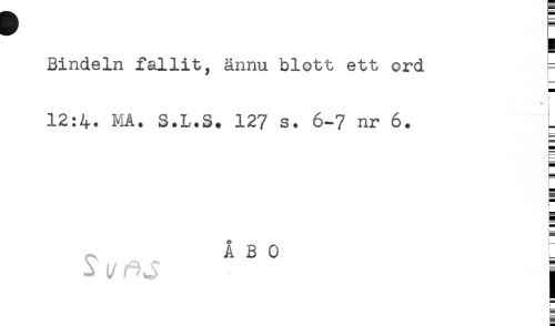 //// ] //// Bindeln fallit, ännu blott ett ord F //// < //// 12:4. MA. S.L.S. 127 s. 6-7 nr 6. //// E //// E //// ÅBO : //// Y (/ ^ J j //// f ////