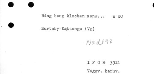 //// Bing bang klockan sang... s 20 //// ^ Surteby-Kqttunga (Vg) //// * //// I F G H 3321 //// Vaggv. barnv. ////