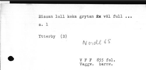 //// - //// Bissan lull koka grytan &K väl full //// s. 1 //// ____. . - 4 //// Ytterby (B) //// ^ V F F 855 fol. //// Vaggv. barnv. ////