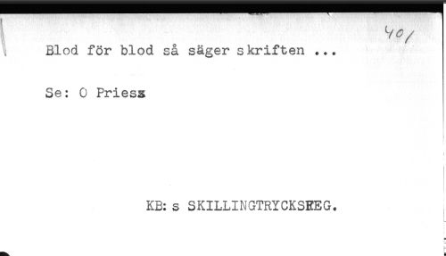 //// Blod för blod så säger skriften ... //// Se: 0 Priesg //// ! //// KB: s SKILLINGTRYCKSREG. //// < //// < ////