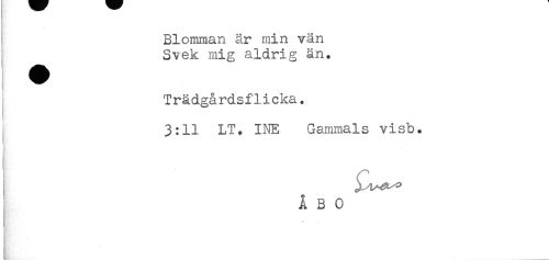 //// Blomman år min vän //// Svek mig aldrig än. //// Trä dgå rd s f1i cka. //// 3:11 LT* INE Gammals visb. ////