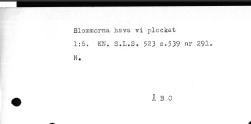 //// Blommorna hava vi plockat //// 1:6. KN* S.L.S. 523 s.539 nr 291. //// N. //// ^ ÅBO ////