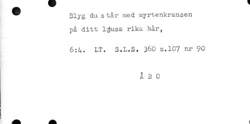 //// ^ Blyg du s tår med myrtenkransen //// på ditt l^usa rika hår, //// 6:4. LT. S.L.S. 360 s.107 nr 90 //// ÅBO ////