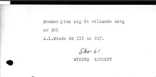 //// Bondengick sig åt villande skog //// nr 36$ //// A.L.Wiede Bd III nr 227. //// ^ WIEDES KONCEPT //// < ////
