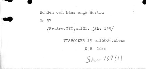 //// Bonden och hans unga Hustru //// /Fr.Årw.III,s.l21. jSkv 159 //// /VISBÖCKER 15-o.l600-talens //// KB 16:o //// ! ^ / ' '! ////