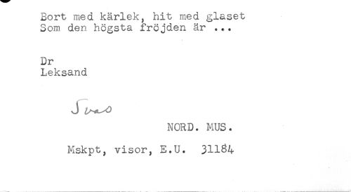//// Som den högsta fröjden är ... //// Dr //// Leksand //// J ^^ //// NORD. MUS. //// Mskpt, visor, E.U. 311^4 ////