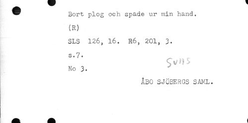 //// ^ Bort plog och spade ur min hand. //// (R) //// SLS 126, 16. R6, 201, 3. //// s.7. //// No 3. //// ÅBO SJÖBERGS SAML. ////