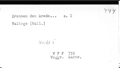 //// Brannen den brede... s. 1 //// Valinge (Hall.) //// t //// /V ^ ^ //// V F F 759 //// Vaggv. barnv. //// i= //// -. - ////