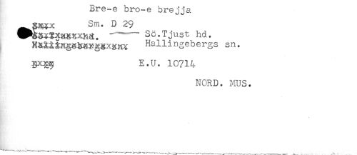 //// SRKx Sm. D 29 //// sa. T just hd. //// HaiXiKgg&gyggxgHX Hallingebergs sn. //// yqg^ E.U. 10714 //// ?JORD. MUS. //// * //// --- ////