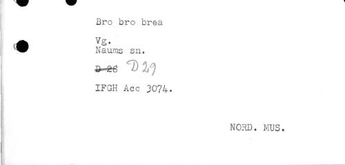 //// Bro bro brea //// t ^^ * //// I Naums sn. //// IFGH Acc 3074. //// NORD. MUS. ////
