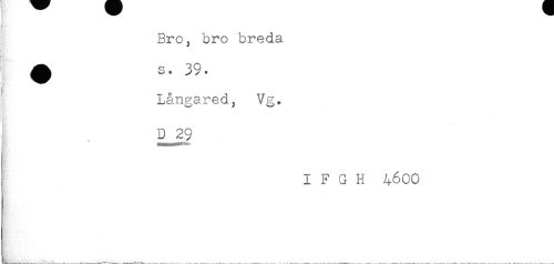 //// Bro, bro breda //// j} e * //// Långared, Vg. //// - //// I F G H 4600 ////