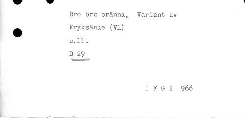 //// Bro bro bränna, Variant av //// - Fryksände (VI) //// s.ll. //// - //// DJ29 //// I F G H 966 ////