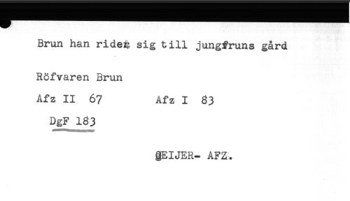 //// Brun han ride^ sig till jungfruns gård //// t ._ //// Röfvaren Brun //// Afz II 67 Afz I 63 //// DgF 163 //// gEIJER- AFZ. ////