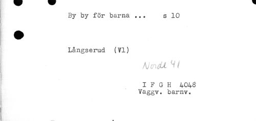 //// By by för barna ... s 10 //// Långserud (VI) //// I F G H 4043 //// Vaggv. barnv. //// ... § ////