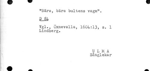 //// "Bära, bära bultans vagn". //// Vgl., Öxnevalla, 1604:13, s. 1 //// Lindberg. //// { ////