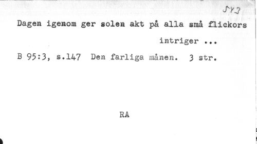 //// Dagen igenom ger solen akt på alla små flickors //// intriger .*. //// B 95:3, s.147 Den farliga månen. 3 str. //// L //// t //// < //// L ////