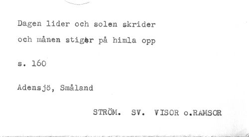 //// Dagen lider och solen skrider //// och månen stigar på himla opp //// s. 160 //// Adensjo, Småland ////
