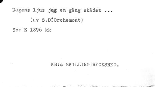 //// Dagens ljus jqg en gång skådat ... //// (av S.DfOrchemont) //// Se: E 1896 kk //// KB:s SKILLINGTRYCKSREG. ////