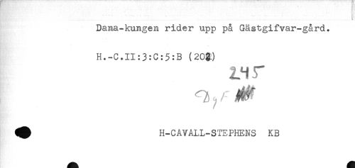//// Dana-kungen rider upp på Gästgifvar-gård. //// H.-C.II:3:C:5:B (20g.) //// Q j; /" ^ //// H-CAVALL-STEPHENS KB ////