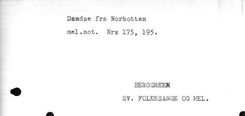 //// Dandse fra Norbotten //// mel.not. Nrs 175, 195. //// BERGGREEN //// - //// SV. FOLKESANGE OG MEL. ////