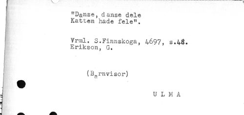//// "Danse, danse dele //// Katten hade fele". //// - //// Vrml. S.Finnakoga, 4697, s*4§. //// Erikson^ G. //// r //// (Barnvisor) //// j ULM A ////