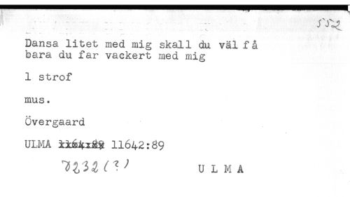 //// '*! *** - - .. . , ... . //// Dansa litet med mig skall du väl få //// bara du far vackert med mig //// 1 strof //// mus. //// Övergaard //// ULMA 11642:89 //// ULMA ////