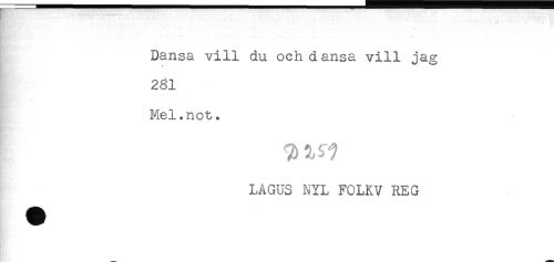 //// Dansa vill du och dansa vill jag //// 281 //// Mel.not. //// ?) a ^ //// LAGUS NYL FOLRV REG ////