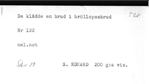 //// De klädde en brud i bröllopsskrud //// Nr 122 //// mel.not //// S. EDUARD 200 g:a vis. ////
