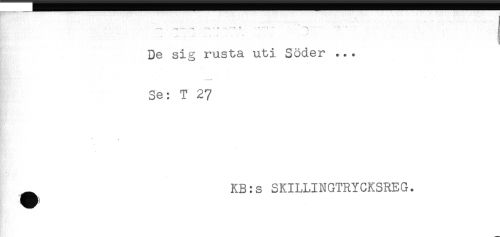 //// ^ -- -i * -...--\ H //// ^ - ^ - ^ -* ' * ' - 1 //// De sig rusta uti Söder ... //// Se: T 27 //// ^ KB:s SKILLINGTRYCKSREG. ////
