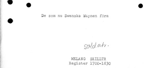 //// De som nu Swenska Wapnen föra //// MELANG SKILLTR //// Register 1700-1630 ////