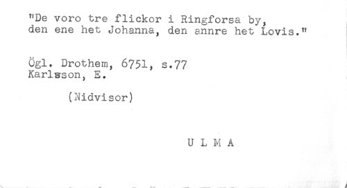 //// v^iu uie i mngiorsa oy, //// den ene het Johanna, den annre het Lovis." //// ögl. Drothem, 6751, s.77 //// Karlsson, E. , //// (Nidvisor) //// U L H å ////