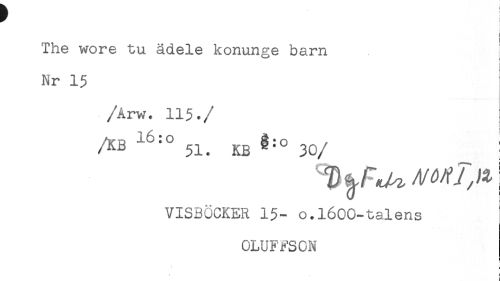//// The wore tu ädele konunge barn //// Nr 15 //// /Arw. 115. //// /< //// /KB 51. KB 30/ _ ' //// VISBÖCKER 15- o.léOO-talens //// OLUFfSON //// t ////