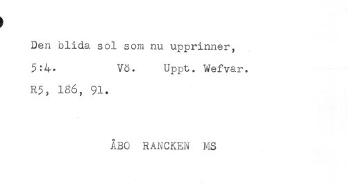 //// ) //// Den blida sol som nu upprinner, //// 5:4. Vö. Uppt. Wefvar. //// R5, 186, 91. //// ÅBO RANCKEN MS ////