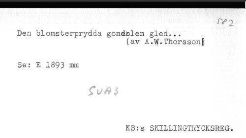 //// Den blomsterprydda gondolen gled... //// (av A.W.Thorsson} //// Se: E 1393 mm //// KB:s SKILLINGTRYCKSREG. ////