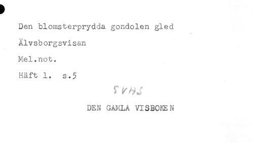 //// Den blomsterprydda gondolen gled //// Älvsborgsvisan //// Mel.not. //// Häft 1. s.5 //// DEN GÅMLÅ VISBOKEN ////