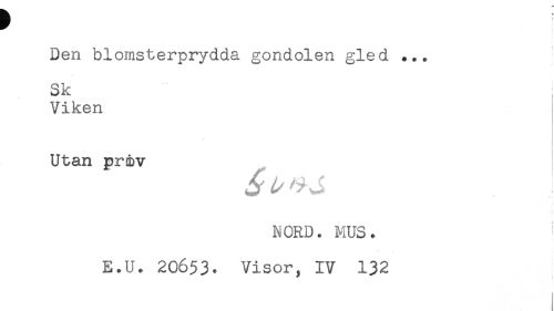 //// Den blomsterprydda gondolen gled ... //// Sk ; //// Viken //// Utan prirv //// N ORD. MUS. //// E.U. 20653. Visor, IV 132 ////