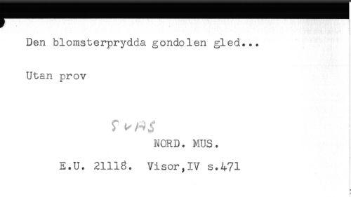 //// Den blomsterprydda gondolen gled... //// Utan prov //// NORD. MUS. //// E.U. 21118. Visor,IV s.471 ////