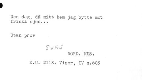 //// Den dag, då mitt hem jag bytte mot //// friska sjön... //// Utan prov //// NORD. MUS. //// E.U. 2118. Visor, IV s<605 ////