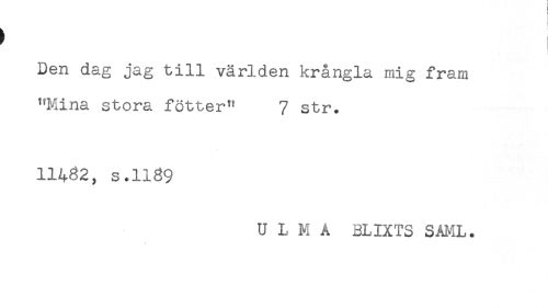 //// Den dag jag till världen krångla mig fram //// "Mina stora fötter" 7 str. //// 11482, s.1189 //// U L M Å BLIXTS SAML. ////