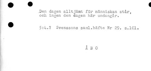 //// .Den dagen alltjämt för människan står, //// och ingen den dagen här undangår. //// ^ 5:4*? Svenssons saml.häfte Nr 29. s.lGl, //// B * * //// ÅBO ////