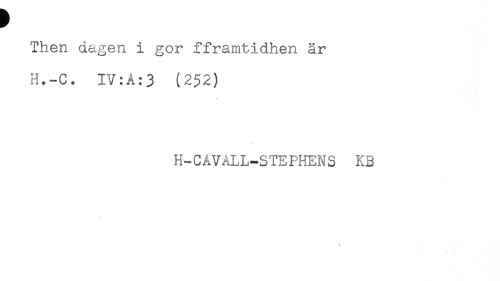 //// Then dagen i gor fframtidhen är //// H.-C. IV:Å:3 (2$2) //// j* //// H-CAVALL-STEPHENS KB ////