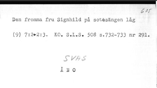 //// Den fromma fru Signhild på sot$sängen låg //// (9) 7:2+2:3. KO. S.L.S. 503 s.732-733 nr 291. //// i //// ! //// ! //// < //// ÅBO //// I //// t //// t //// < ////