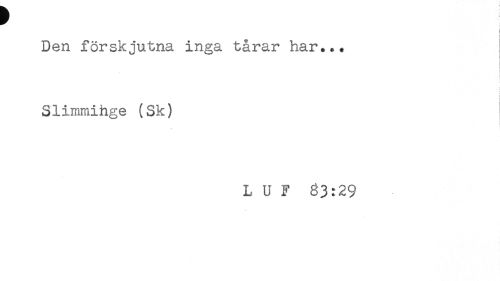 //// i //// < //// Den förskjutna inga tårar har... //// t //// j //// t //// Slimmihge (Sk) //// L U F ^3:29 ////
