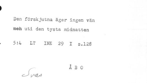 //// Den förskjutna äger ingen vän //// meh uti den tysta midnatten //// < //// 5:4 LT INE 29 I s.123 ////