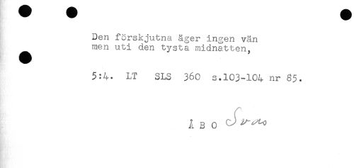 //// Den förskjutna äger ingen vän //// men uti den tysta midnatten, //// 5:4. LT SLS 360 s.103-104 nr 85. //// ÅBO ////